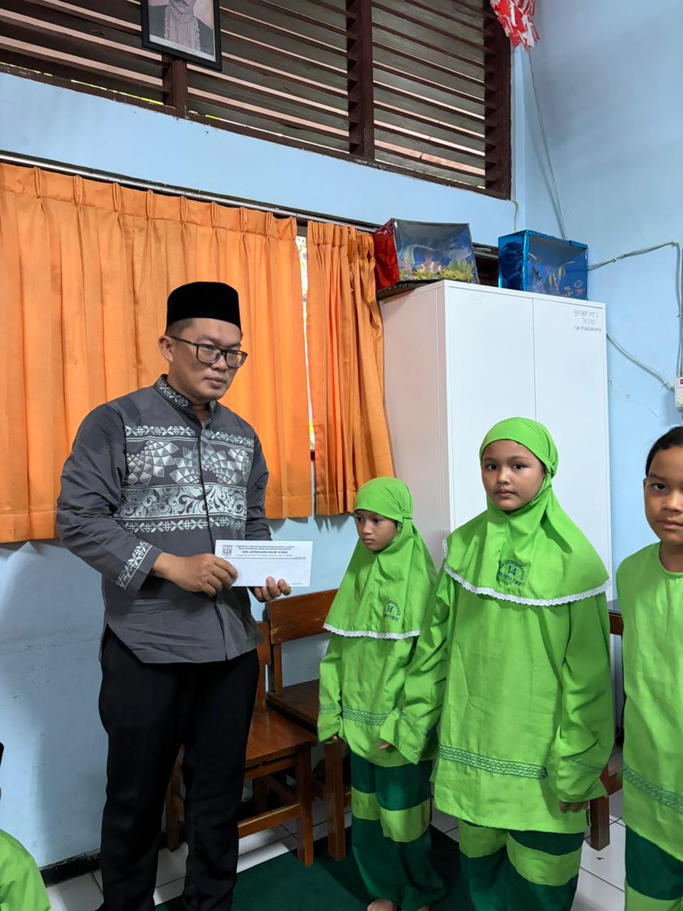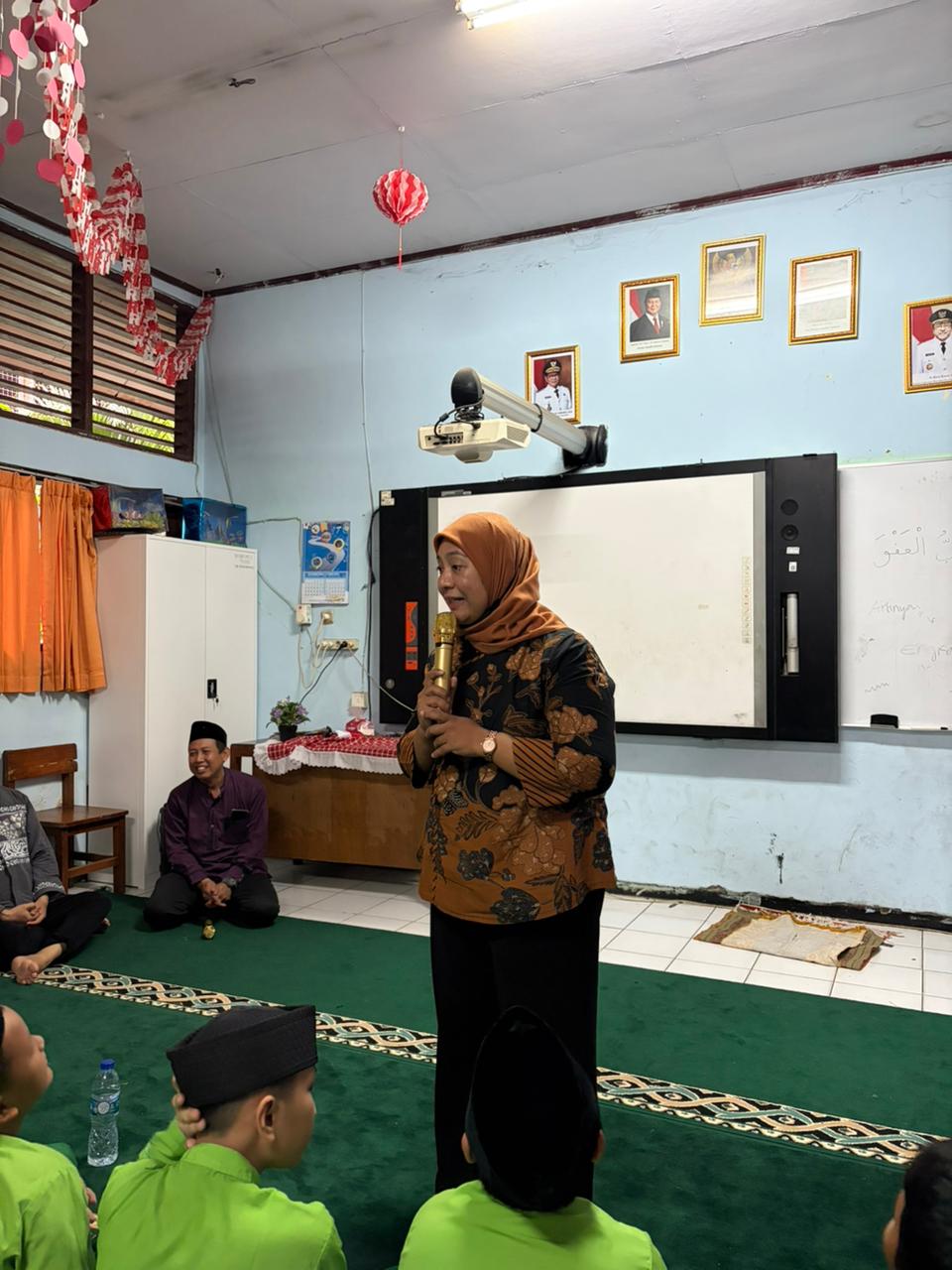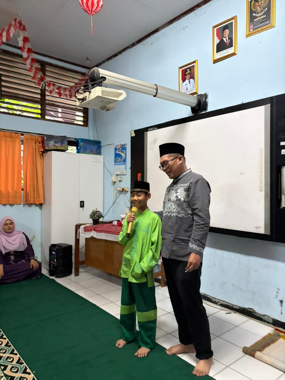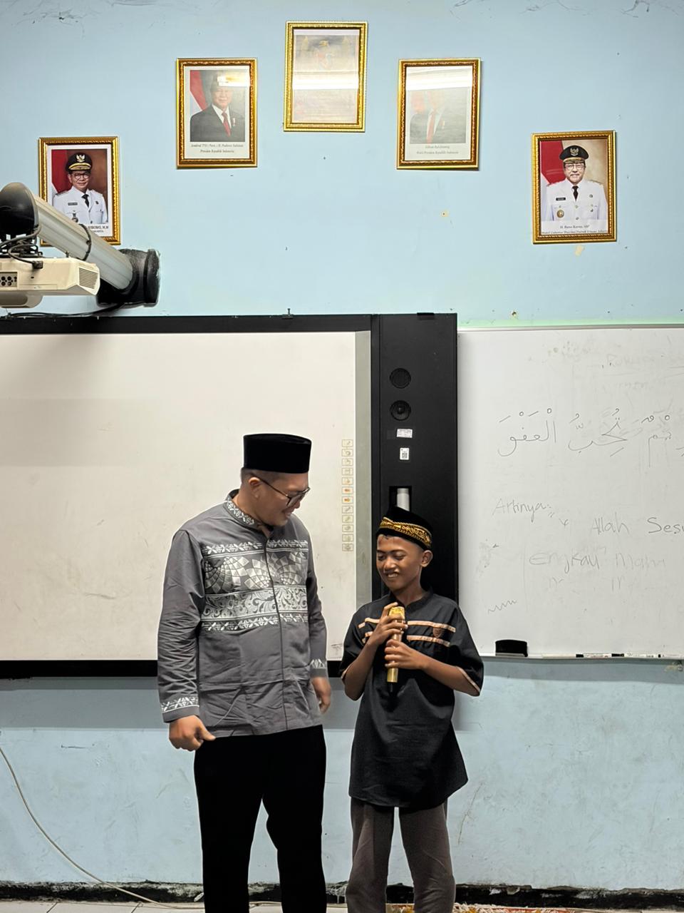 Untuk menambah semarak suasana, beliau juga mengadakan kuis-kuis Islami yang langsung disambut dengan sangat antusias oleh para murid. Anak-anak dengan penuh semangat mengangkat tangan untuk menjawab pertanyaan yang diberikan. Tawa dan keceriaan pun terlihat ketika beberapa murid berhasil menjawab dengan benar dan mendapatkan hadiah menarik, sehingga membuat suasana semakin hidup dan menyenangkan.