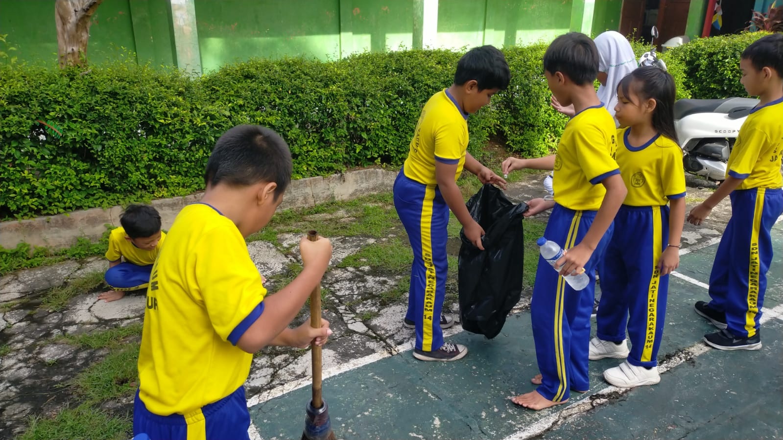 “Biar sekolah kita bersih ya!”