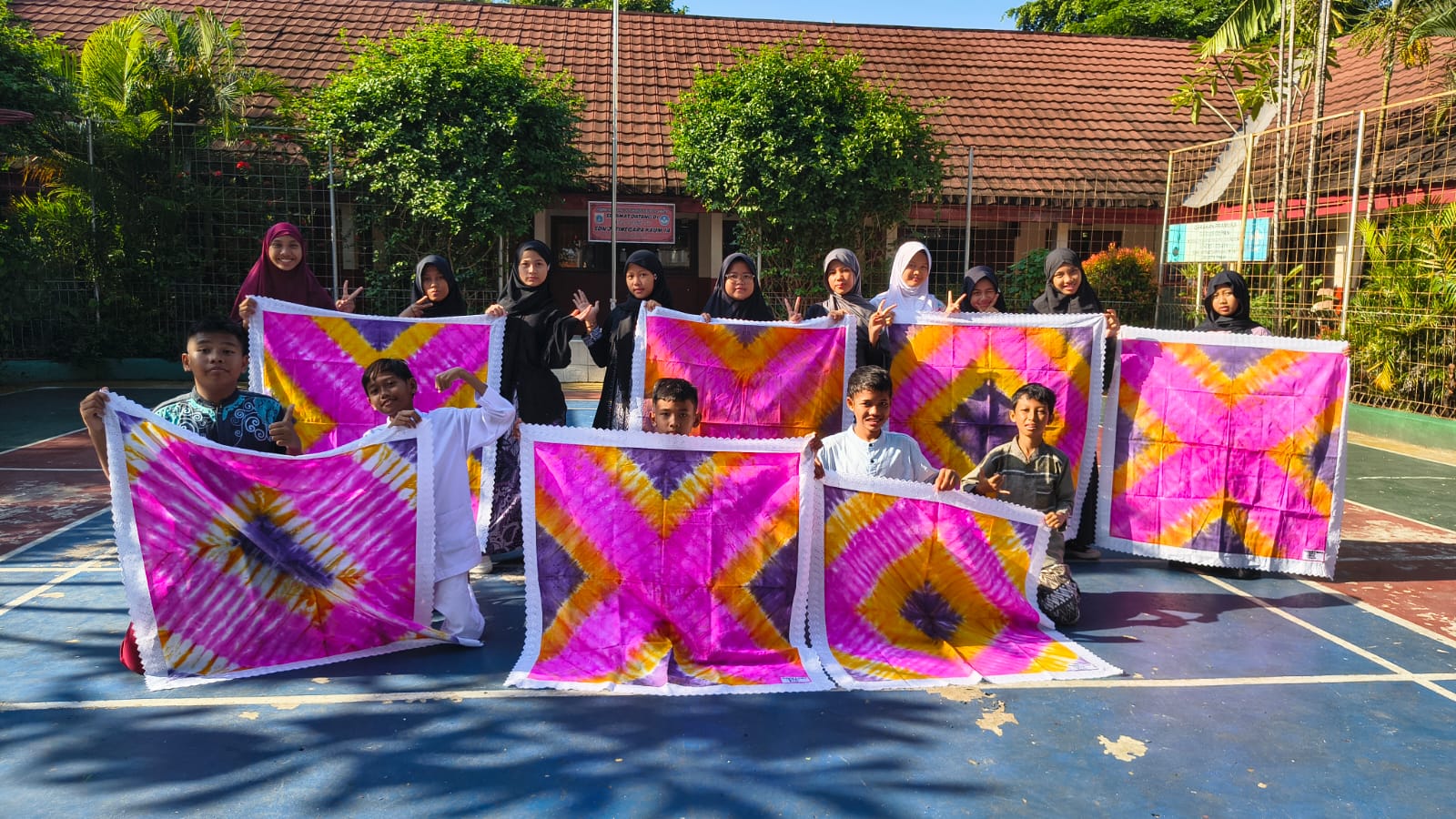 Suasana penuh warna dan keceriaan tampak jelas dalam pelaksanaan ujian praktik kelas 6 pada mata pelajaran Seni Rupa di SDN Jatinegara Kaum 14. Dalam kegiatan ini, para siswa menampilkan kreativitas mereka dengan membuat karya seni taplak jumputan, sebuah teknik pewarnaan kain tradisional yang mengandalkan ikatan dan celupan warna untuk menghasilkan motif yang unik dan indah.